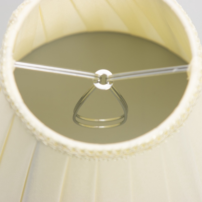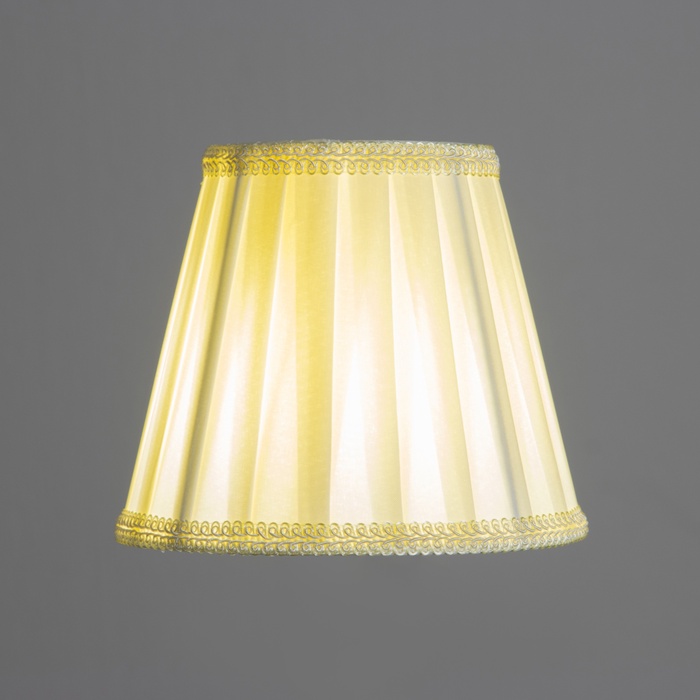 Текстильный абажур с универсальным креплением типа «прищепка» обтянут плотной светопроницаемой тканью. Идеально подойдёт для классических люстр и светильников.