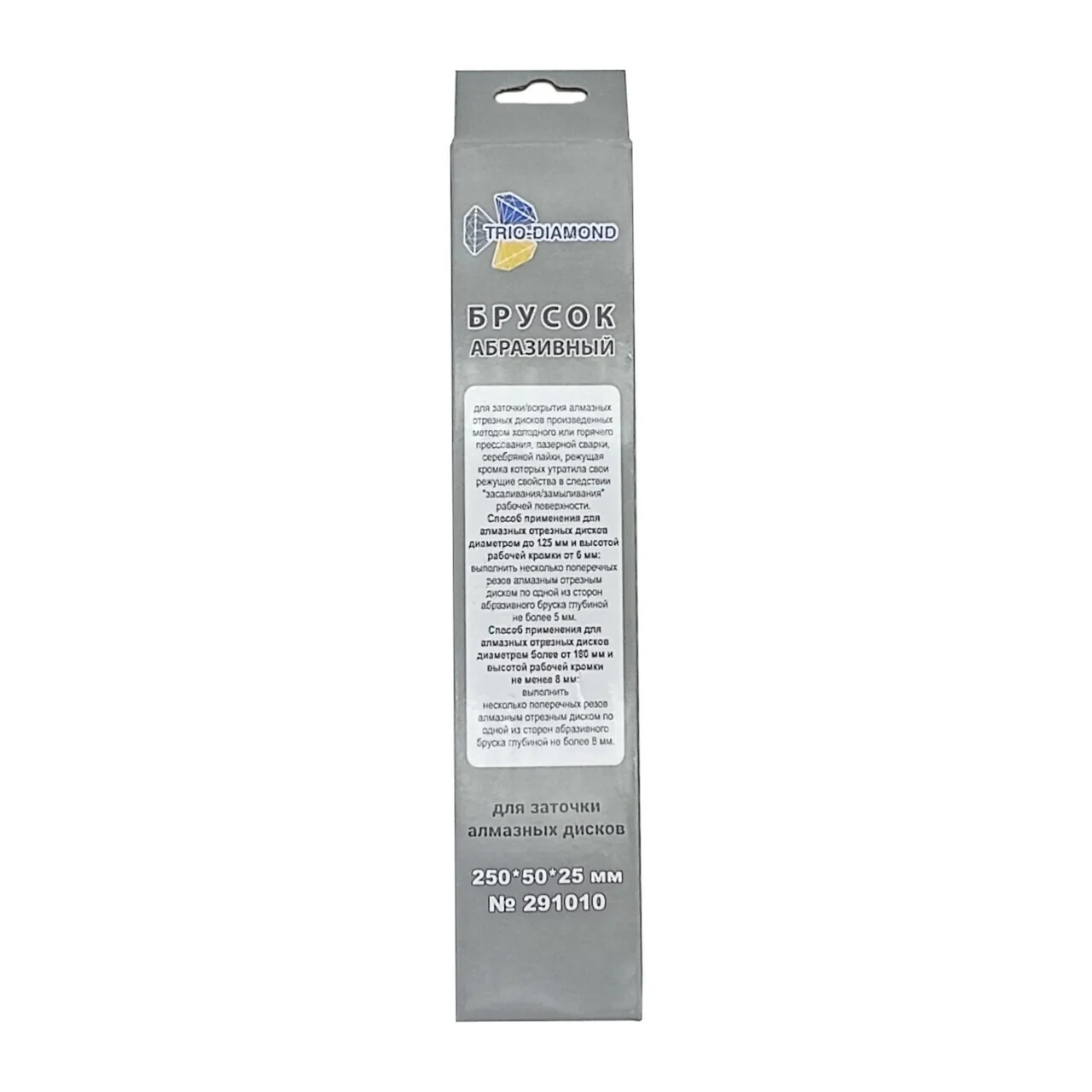 Абразивный брусок TRIO-DIAMOND размером 250*50*25 мм — идеальный инструмент для заточки алмазных дисков. Используйте его для восстановления режущих свойств дисков, обеспечивая безупречную работу в строительных и производственных условиях.