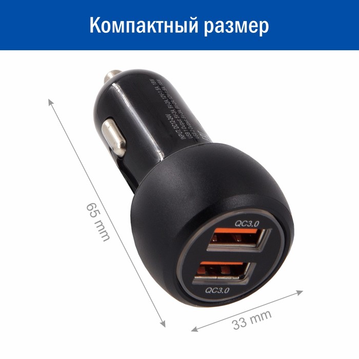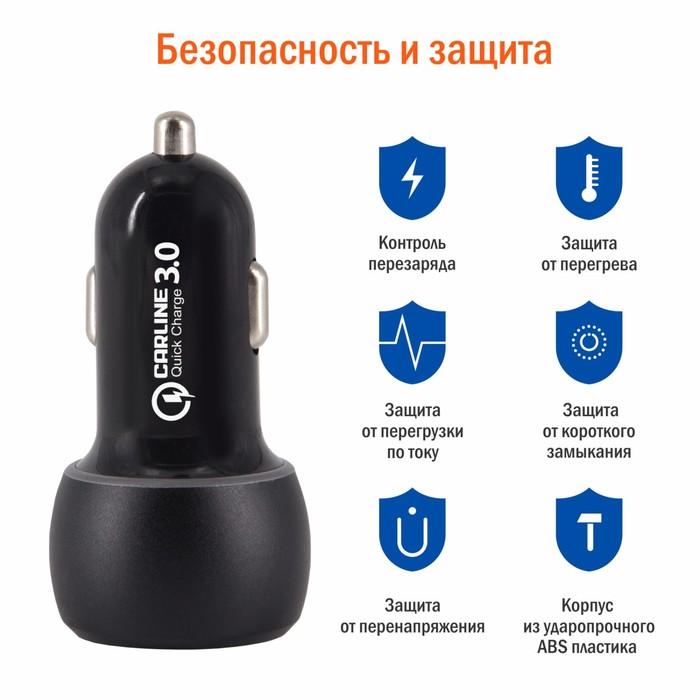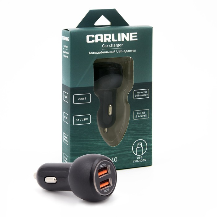 Адаптер автомобильный CARLINE® 2хUSB Quick Charge 3.0, в прикуриватель 12 В, черный — Характеристики