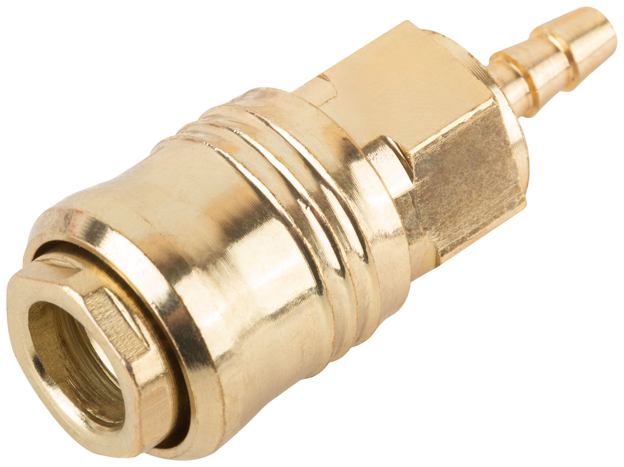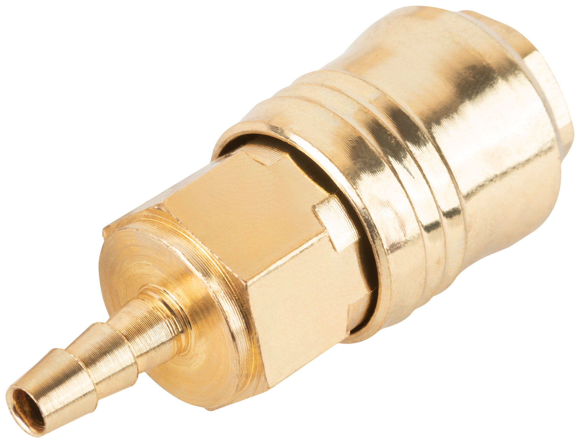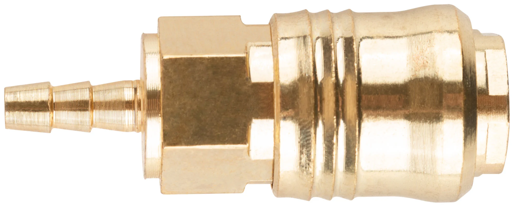 Конструкция адаптера включает внутреннее быстросъемное соединение типа 'елочка' диаметром 6 мм. Изготовлен из прочной латуни, он гарантирует долговечность и устойчивость к коррозии. Подключение шланга осуществляется легко и быстро, с помощью ключа S=20.
