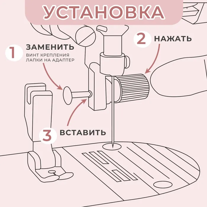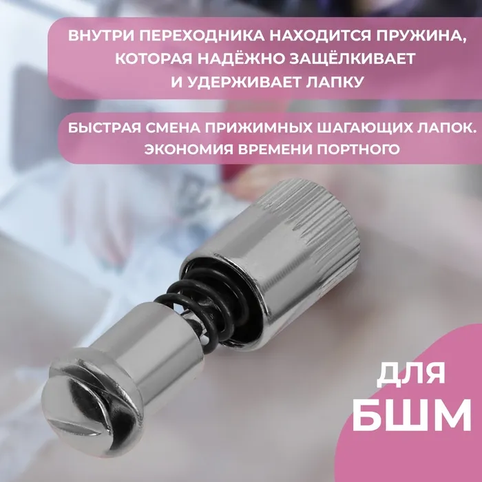 Адаптер для быстрой замены прижимных шагающих лапок — отличное решение для тех, кто ценит свои время и комфорт. С помощью этого приспособления вы сможете установить или заменить лапку на швейной машинке всего за несколько секунд без использования отвёртки.