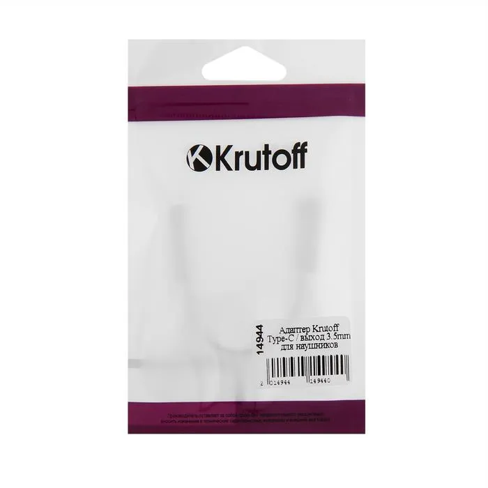Адаптер Krutoff, Type-C - 3.5 мм, белый — Характеристики