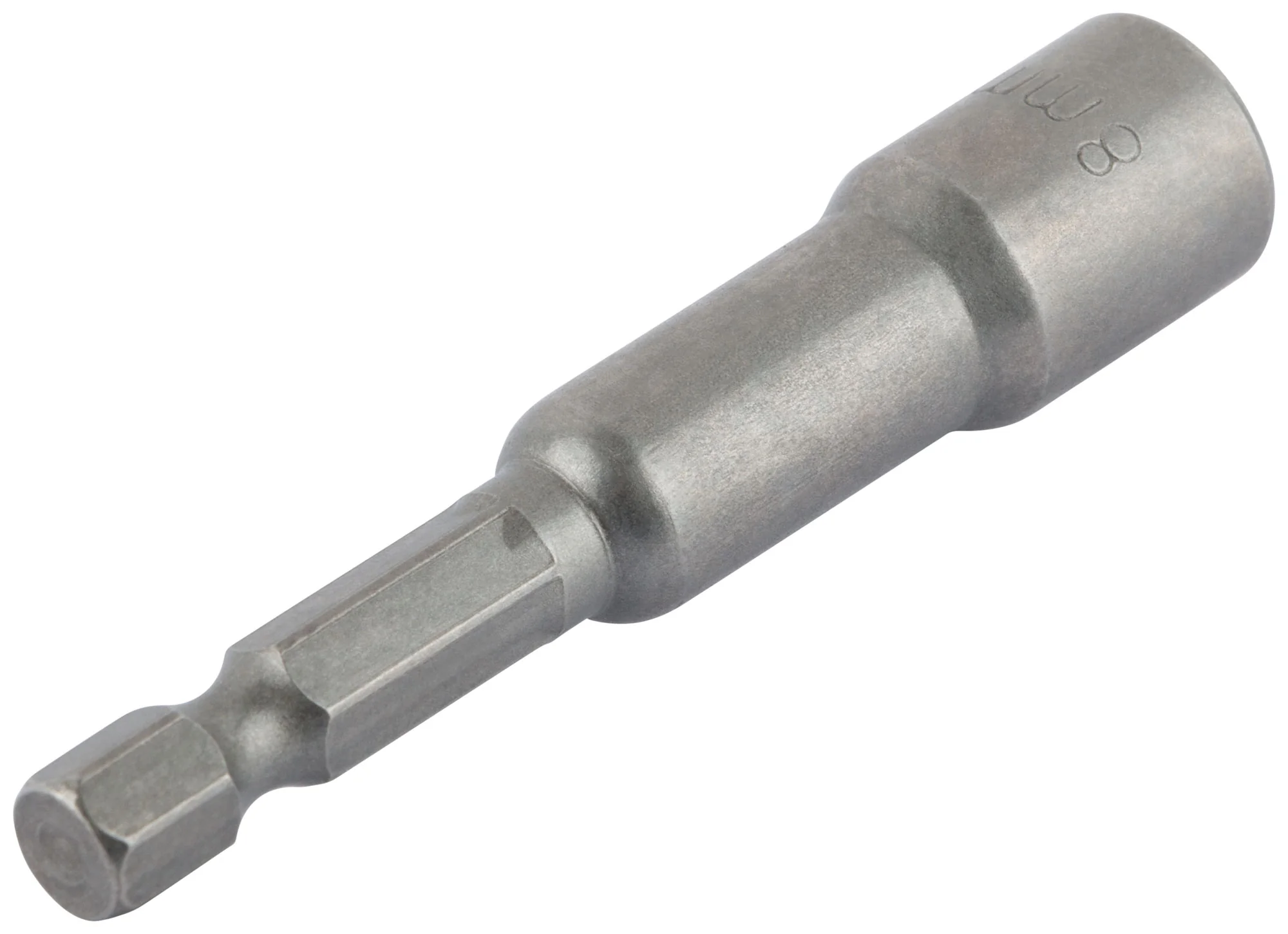 Адаптер оснащен магнитным фиксатором, что облегчает удержание и позиционирование крепежа. Изготовлен из инструментальной стали, он гарантирует долговечность и надежность в любых условиях на строительной площадке. Хвостовик под биту легко интегрируется с большинством стандартных инструментов.
