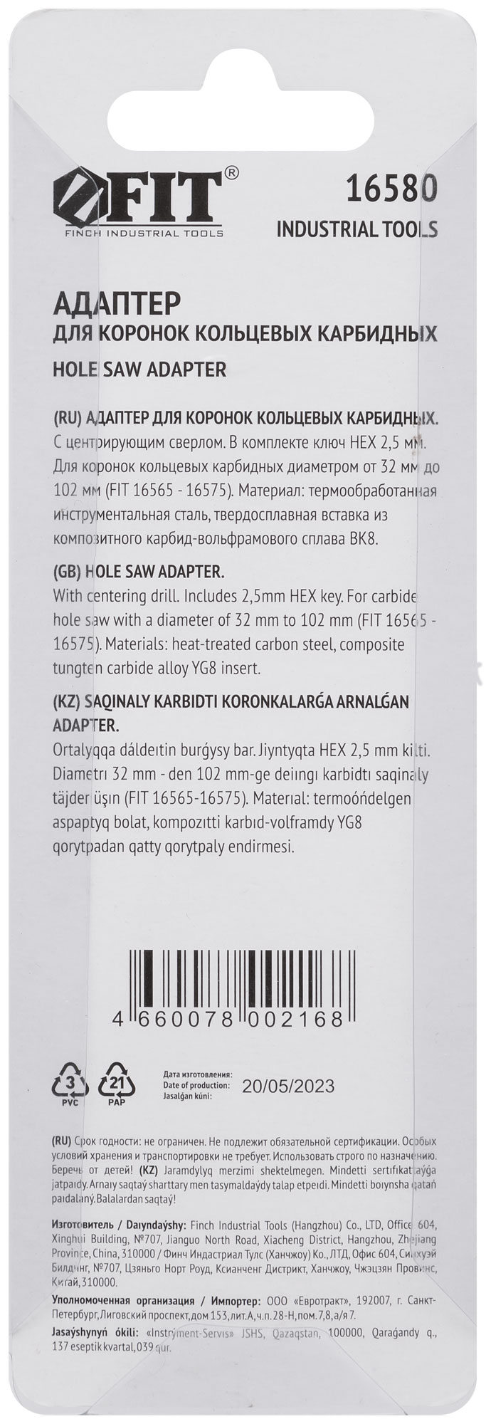 Выберите адаптер FIT 16580, чтобы обеспечить точность и надежность в вашей работе с кольцевыми коронками.