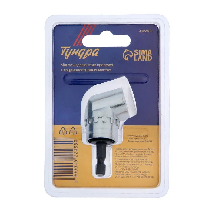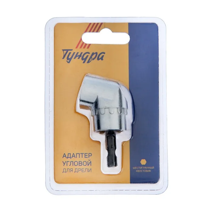 Угловой адаптер для дрели TUNDRA с шестигранным хвостовиком — практичное решение для работы в ограниченном пространстве. Он обеспечивает удобство и точность при выполнении задач, где прямой доступ невозможен.