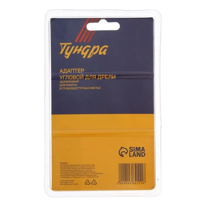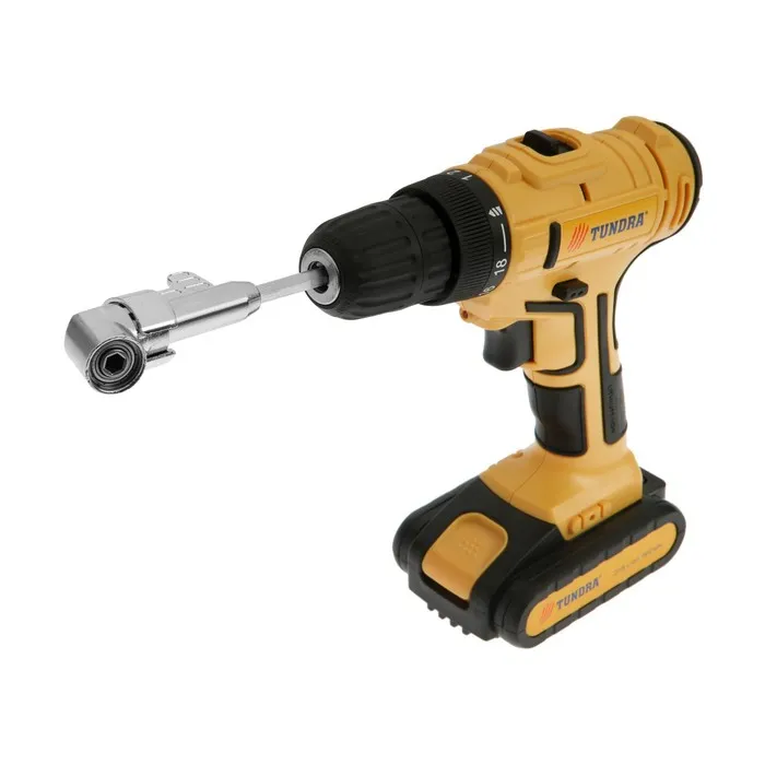 Угловой адаптер для дрели TUNDRA — удобное решение для работы в труднодоступных местах. Удлиненная конструкция обеспечивает комфорт при выполнении задач, где прямой доступ ограничен.