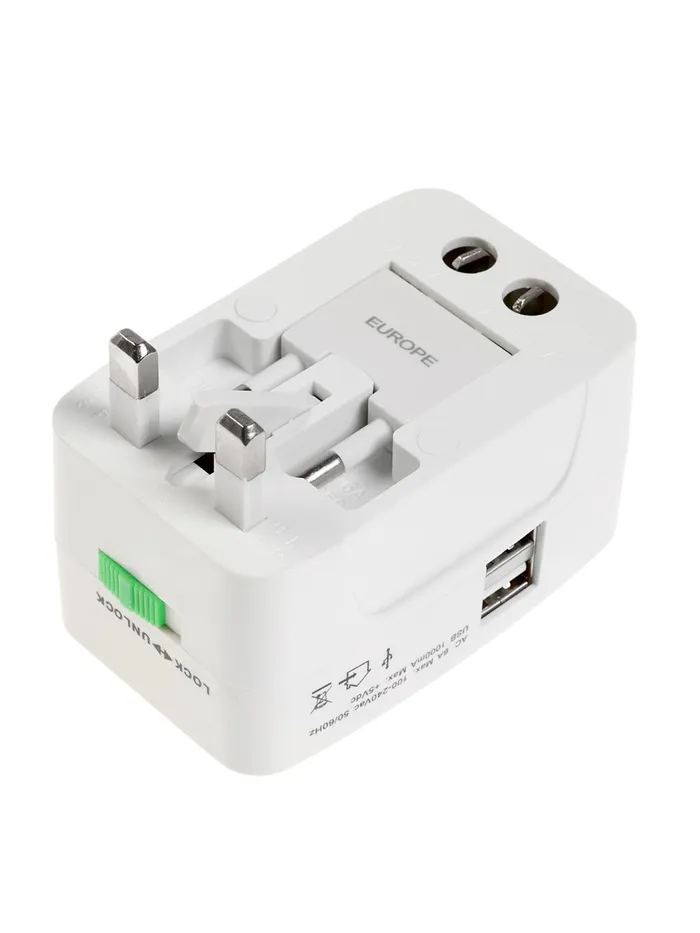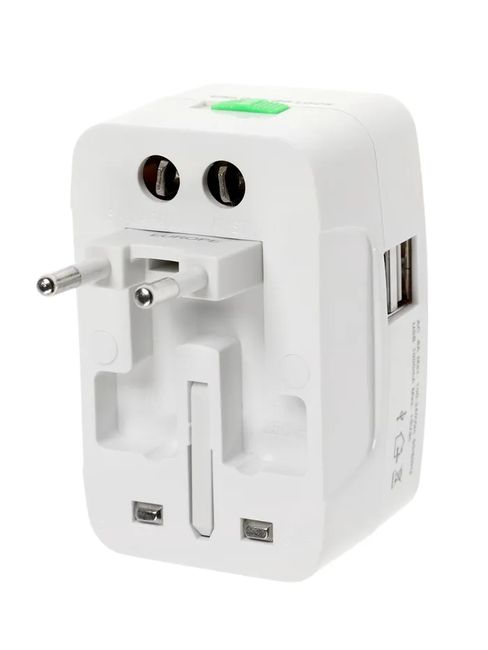 Один адаптер — пять вариантов подключения! Универсальный белый адаптер с USB-портом станет идеальным решением для зарядки ваших устройств дома, в офисе или путешествии.