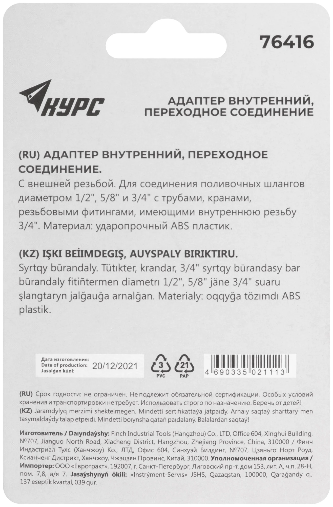 Адаптер выполнен из ABS пластика, что делает его легким и прочным. Конструкция адаптера позволяет легко и быстро подключать шланги без использования дополнительных инструментов. Упакован в блистер для удобства хранения и транспортировки.