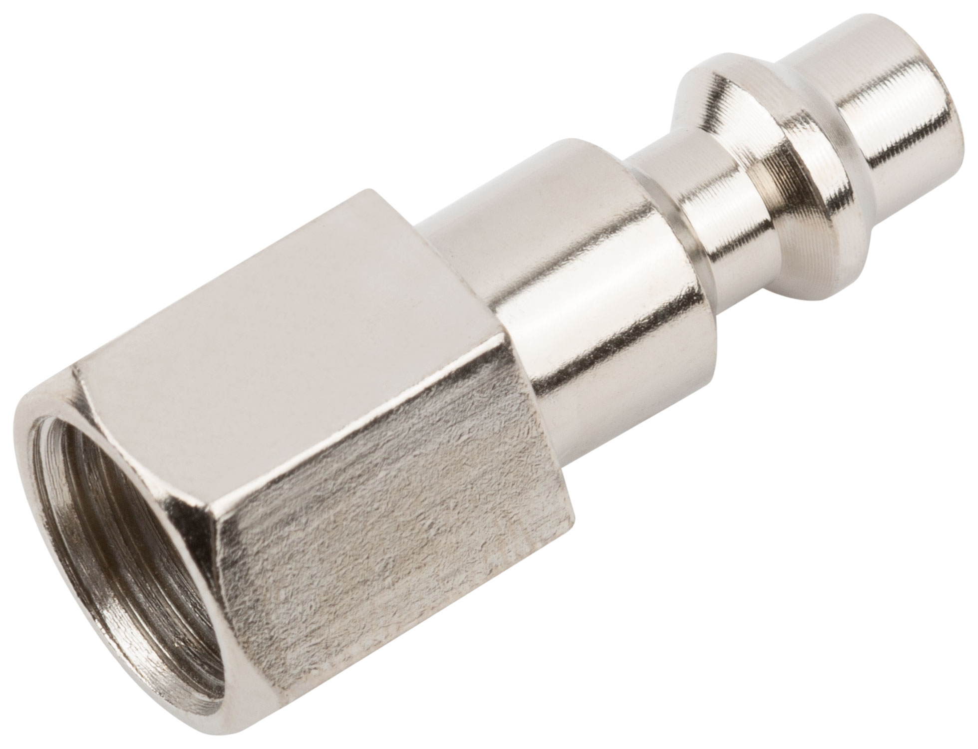 Изделие выполнено из прочной стали с никелированным антикоррозийным покрытием. Внутреннее резьбовое соединение 1/4'' американского типа позволяет легко интегрироваться с большинством стандартных пневматических систем.