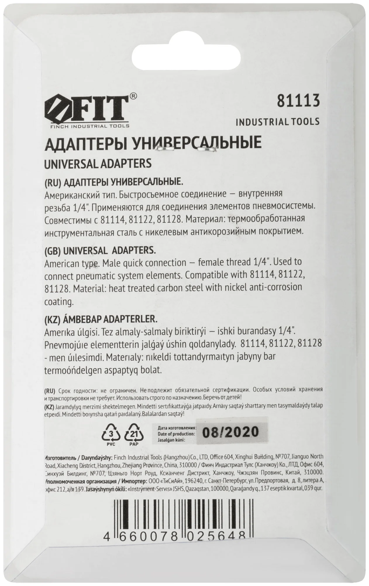 Выберите адаптеры FIT 81113, чтобы обеспечить надежное и долговечное соединение вашего пневматического оборудования.
