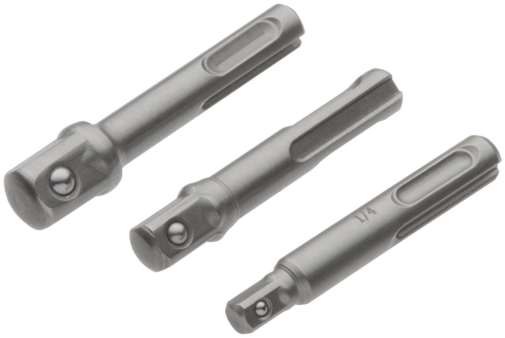 Изготовленные из легированной стали, адаптеры гарантируют высокую прочность и износостойкость. В наборе три адаптера с хвостовиками 1/4'', 3/8'' и 1/2'', что позволяет работать с широким спектром крепежных элементов.