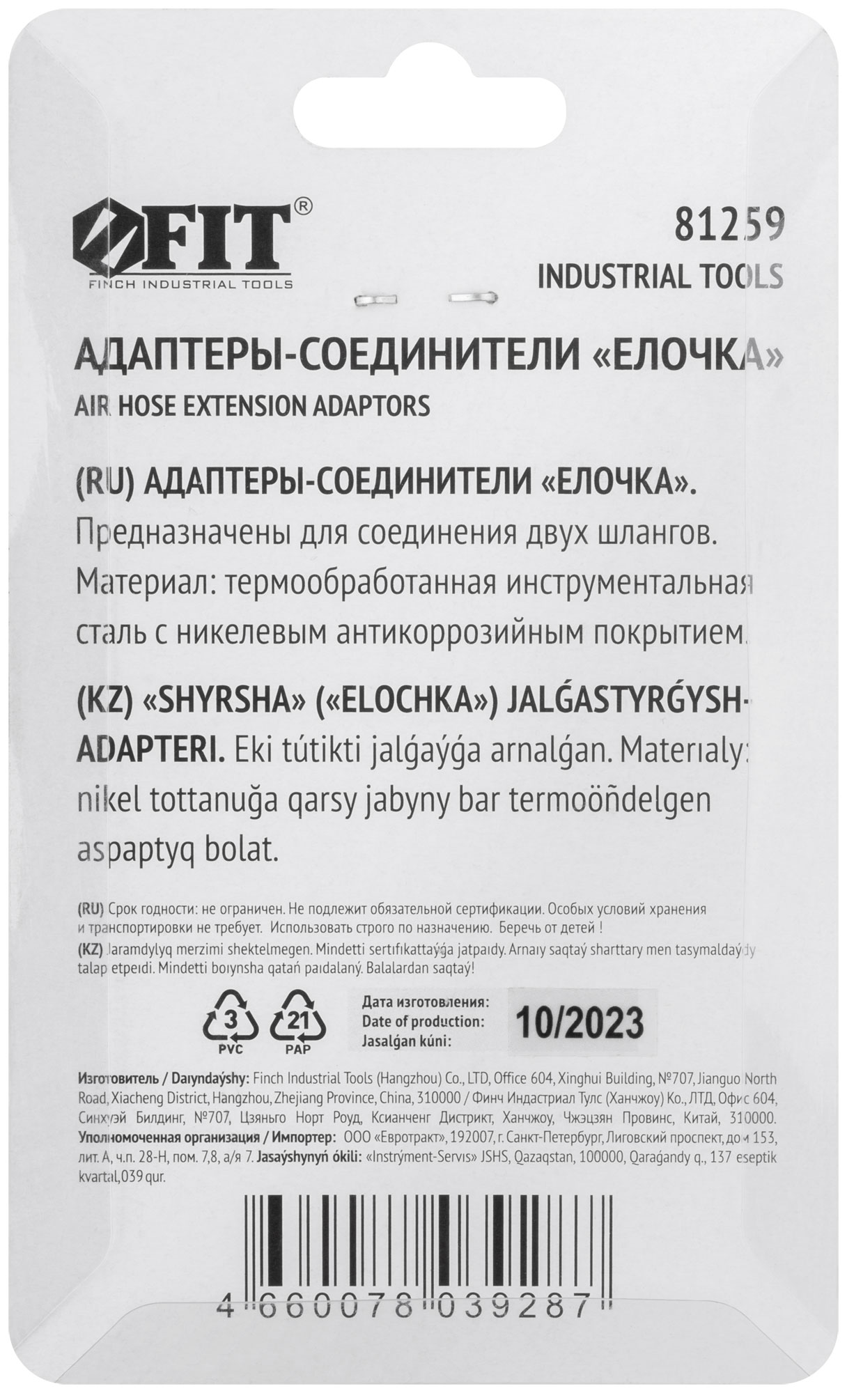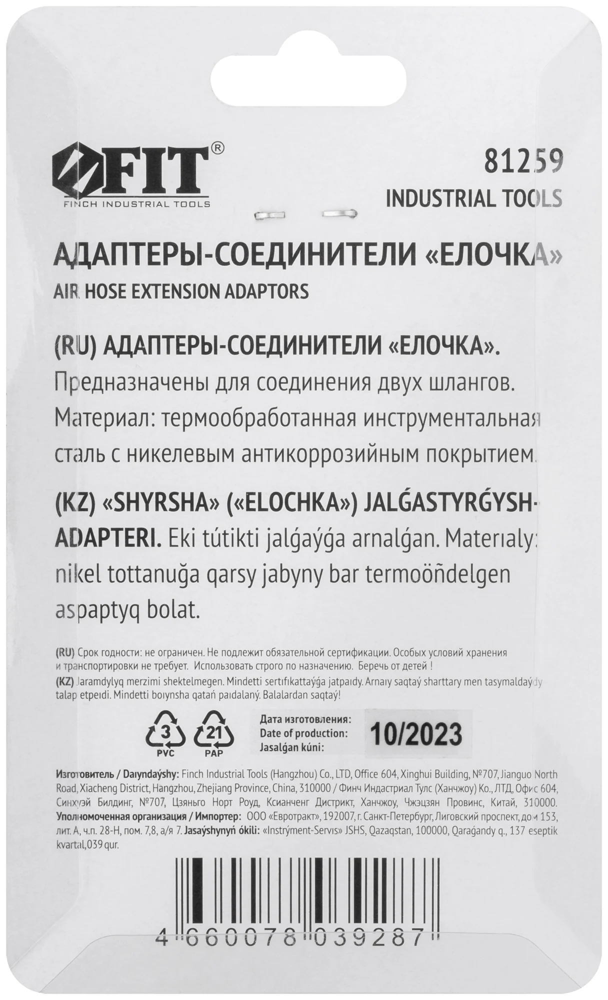 Выберите адаптеры-соединители "елочка" FIT, чтобы обеспечить надёжное и долговечное соединение в ваших пневмосистемах.
