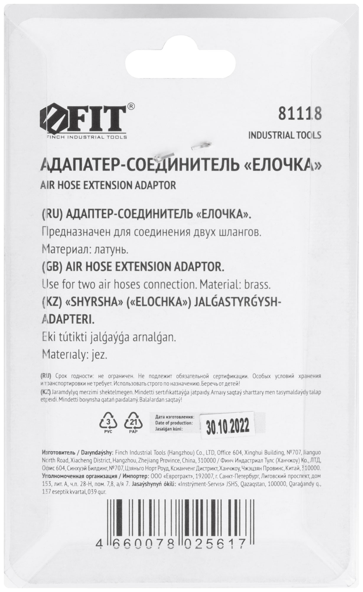 Выберите адаптеры-соединители от FIT 81118, чтобы обеспечить надежное соединение в ваших пневмосистемах.