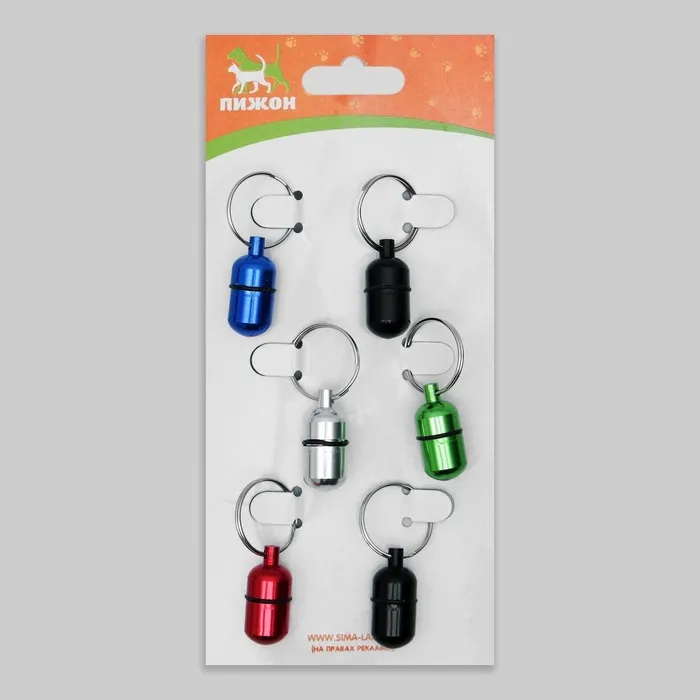 Откройте зеркальную капсулу и вложите в нее нужную информацию для связи. Адресник будет незаменим при случаи пропажи питомца.