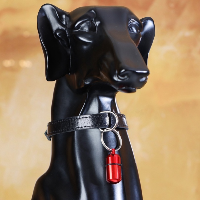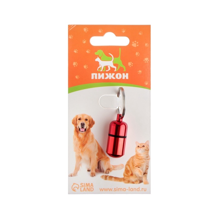 Откройте капсулу и вложите в нее нужную информацию для связи. Адресник будет незаменим при случаи пропажи питомца. Поможет ему вернуться домой. Напишите кличку животного и номер телефона. Аксессуар легко крепится к ошейнику при помощи надежной застёжки.