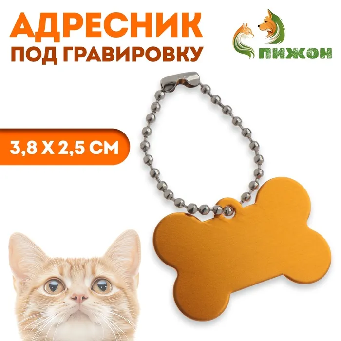 Этот стильный адресник в форме аппетитной косточки не только украсит Вашего питомца, но и поможет ему вернуться домой. Вам нужно всего лишь нанести гравировку: на лицевой стороне медальона можно написать кличку животного, а на обратной номер телефона. Аксессуар легко крепится к ошейнику при помощи надежной застёжки. Благодаря качественному и прочному металлу гравировка долговечна, устойчива к атмосферным воздействиям и царапинам. Адресник под гравировку.