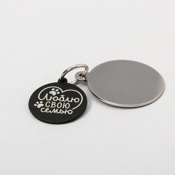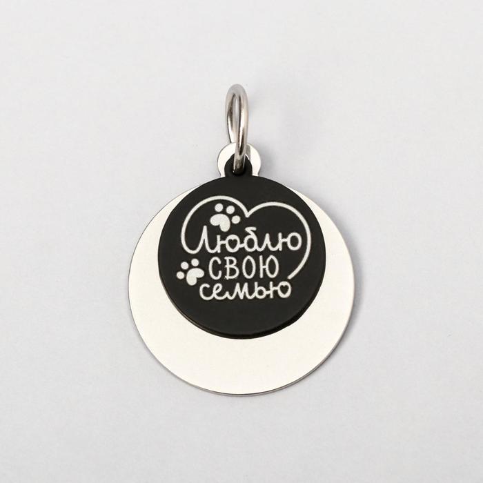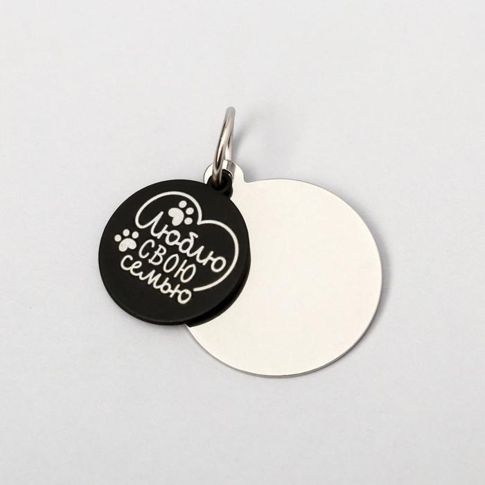 Адресник под гравировку + подвес «Люблю свою семью», верхняя часть d=2,2 см, нижняя d=3 см, цвет чёрный