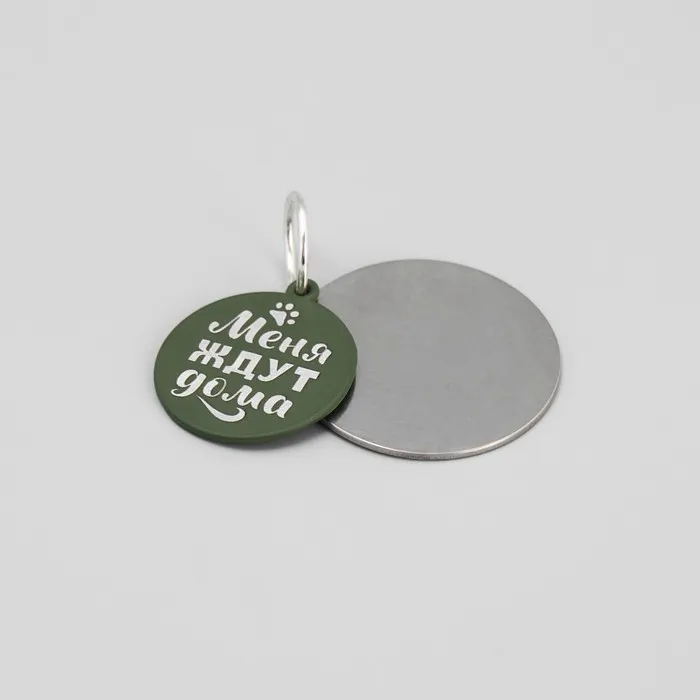 Адресник с подвесом «Меня ждут дома» изготовлен из металла высокого качества. В комплекте есть крепкое колечко. Изделие предназначено для гравировки.