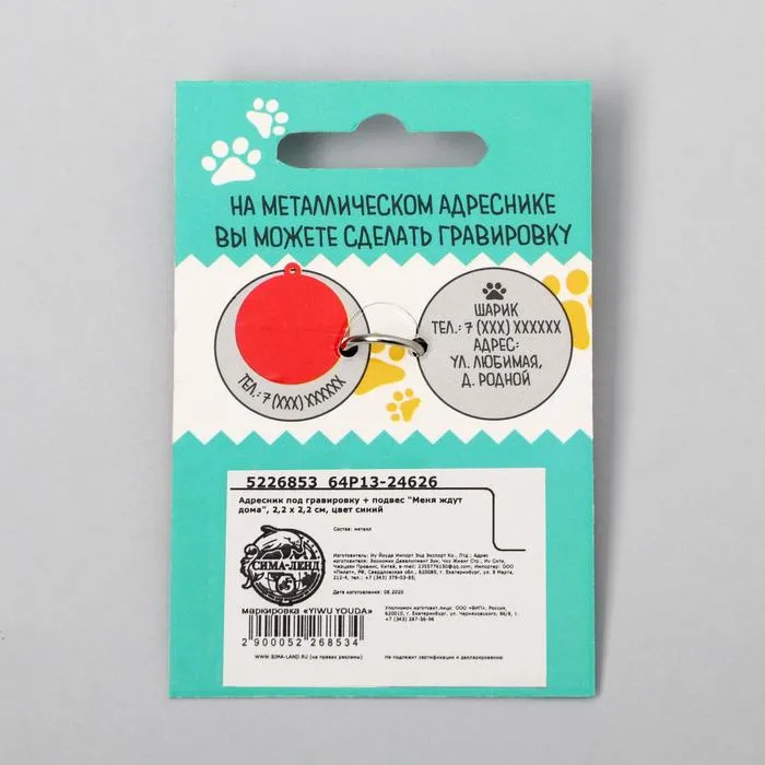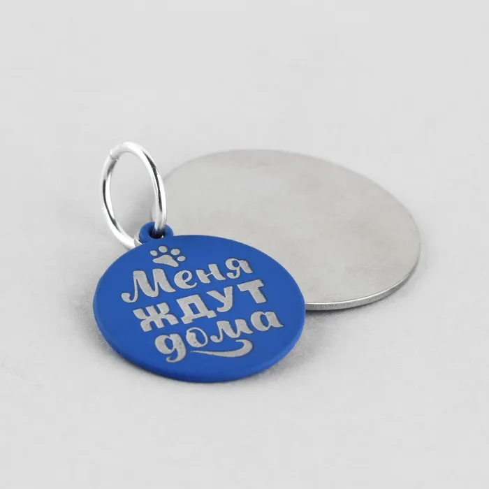 Адресник с подвесом «Меня ждут дома» изготовлен из металла высокого качества. В комплекте есть крепкое колечко. Изделие предназначено для гравировки.