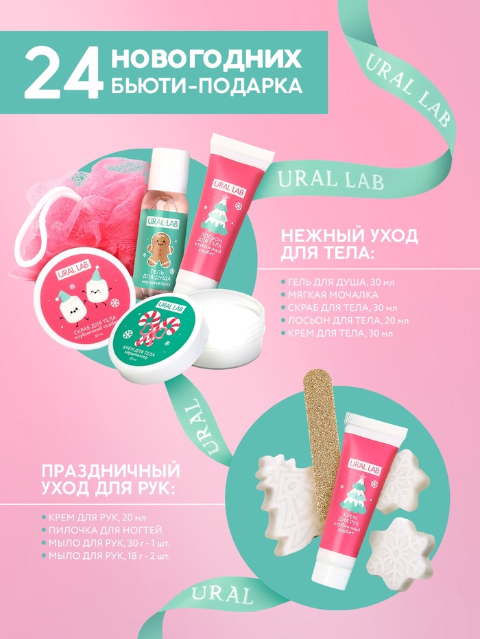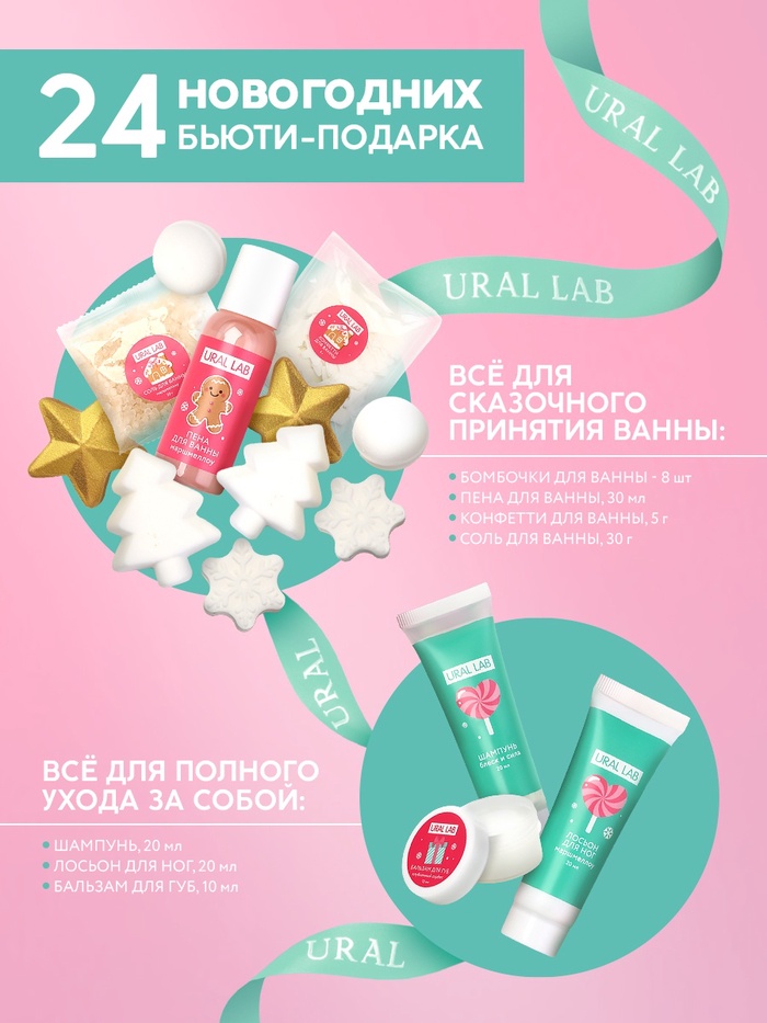 Адвент-календарь косметики «С Новым годом!», 24 предмета, URAL LAB — Характеристики
