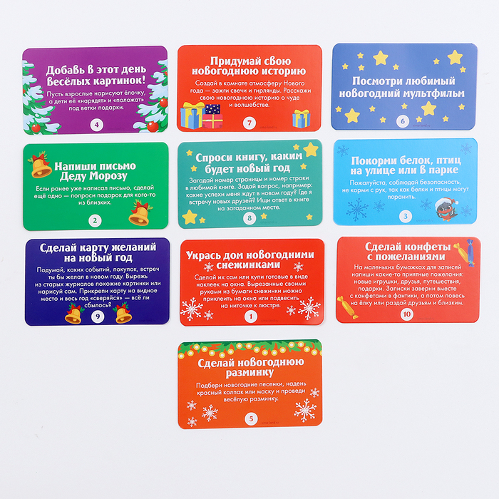 - 10 двусторонних карточек с заданиями.