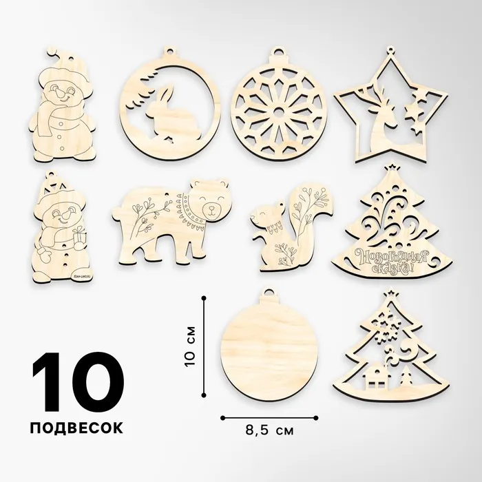 - 10 деревянных подвесок для создания игрушек.