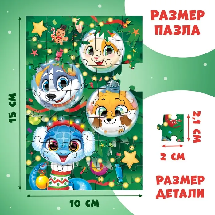 - Пазлы поставляются в праздничной коробке размером: 24 × 4,5 × 24 см.