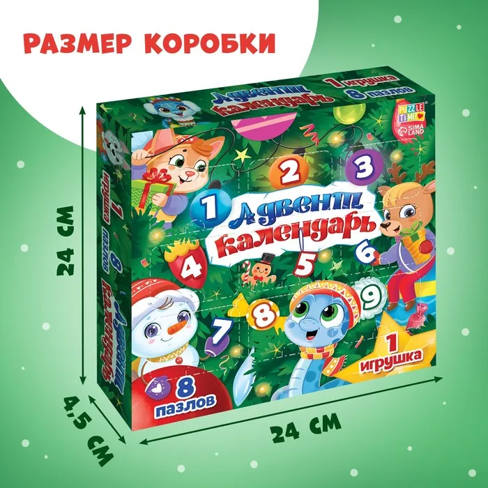 Адвент - календарь «Новогодние игрушки», детский, 9 окошек с подарками: 8 пазлов и игрушка — Характеристики