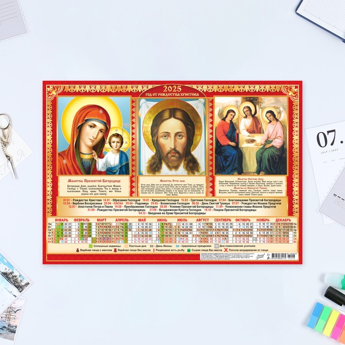 Календарь перекидной на скрепке «Православный календарь» 2025 год, 12 листов, 29×29 см