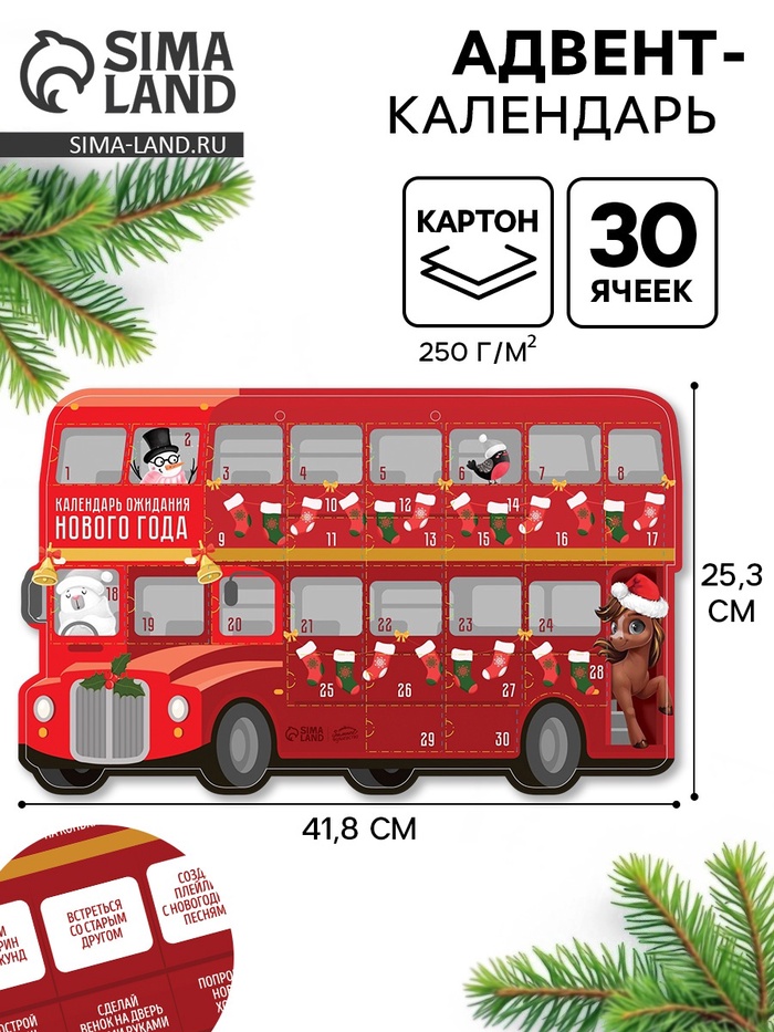 Адвент календарь новогодний «Автобус» 41.8×25.3 см — Характеристики