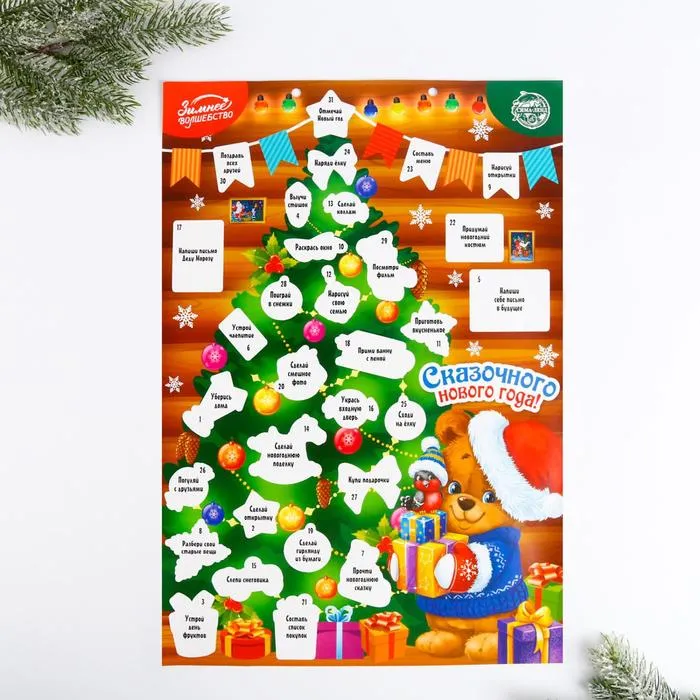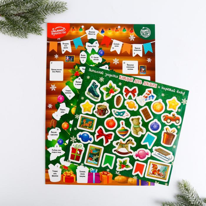 Адвент календарь новогодний с наклейками «Сказочного года», 30×42 см — Характеристики