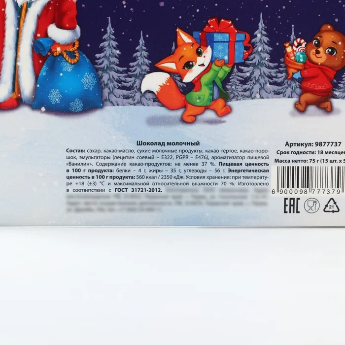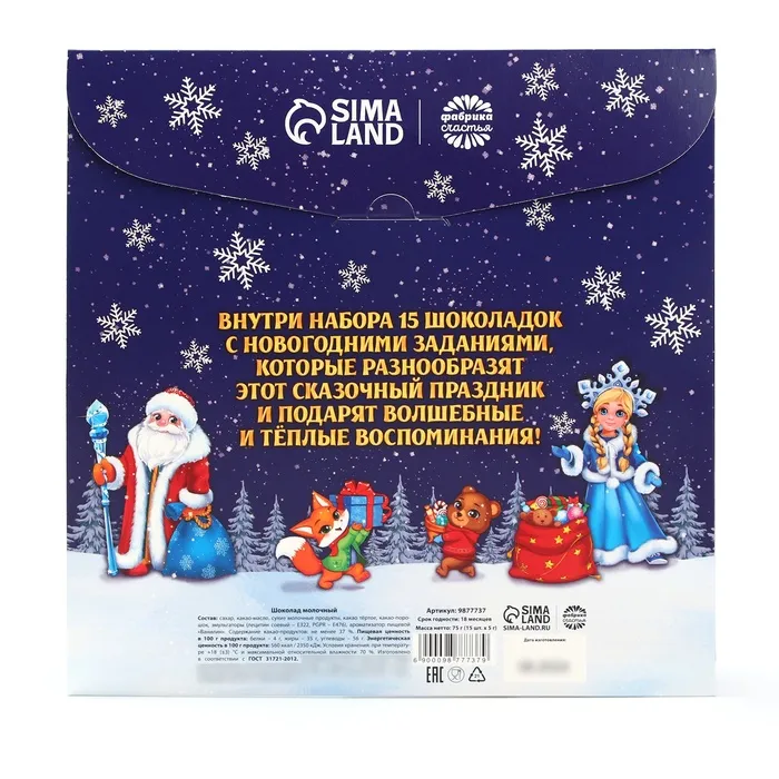 Адвент-календарь новогодний «Время для праздника», с молочным шоколадом, 5 гр 15 шт — Характеристики
