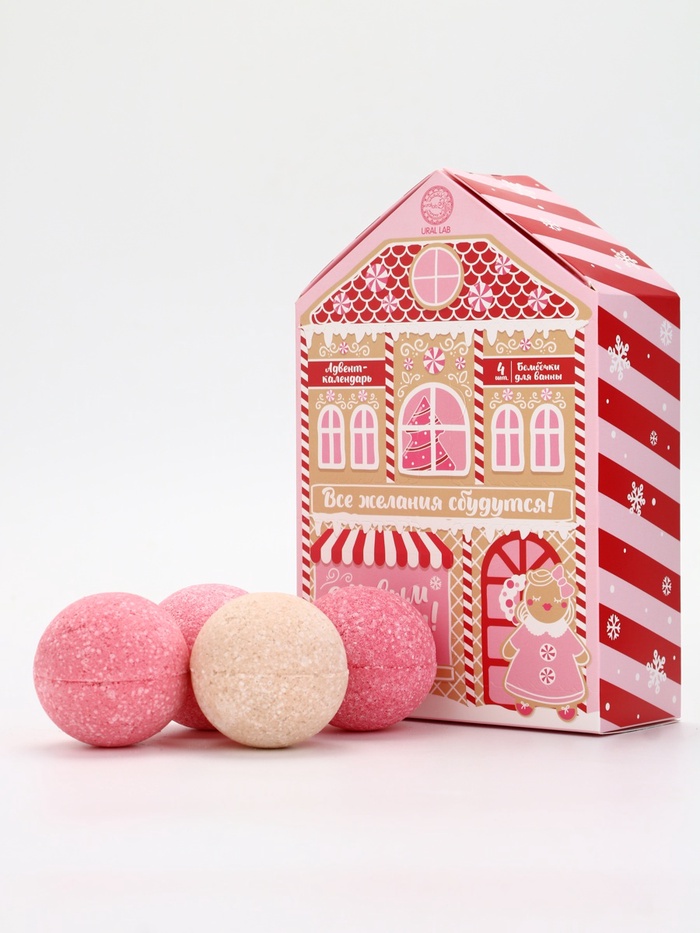 Адвент-календарь новогодний «Все желания сбудутся», бомбочки для ванны, 4 шт. х120 г, URAL LAB — Характеристики