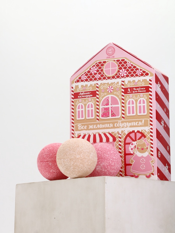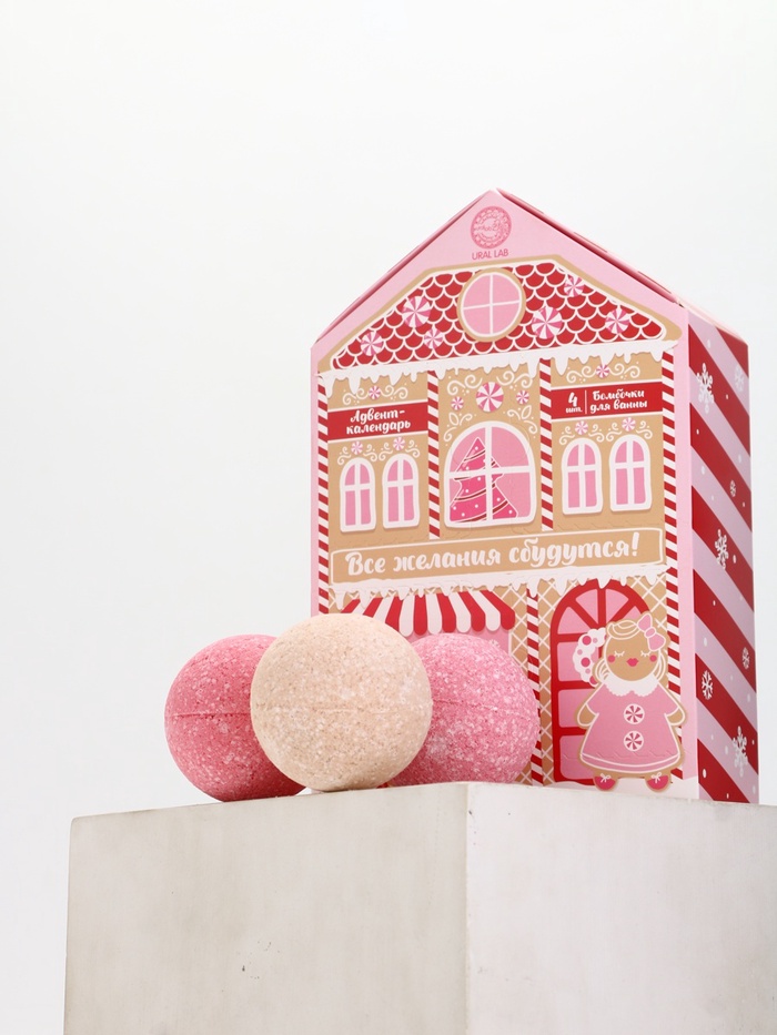 Адвент-календарь новогодний «Все желания сбудутся», бомбочки для ванны, 4 шт. х120 г, URAL LAB
