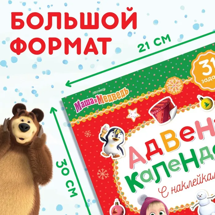 Адвент - календарь с наклейками, А4, 24 стр., Маша и Медведь — Характеристики