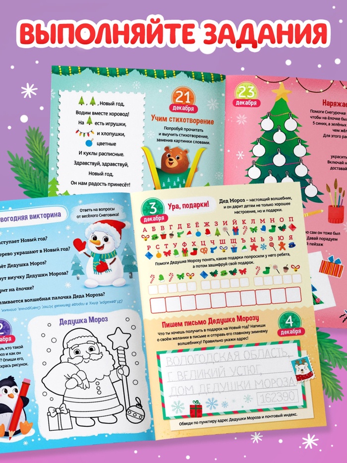 • Развивает эмпатию и творчество. Многие задания учат делать что-то приятное: порадуй Дедушку Мороза, сделай открытку, укрась дом.