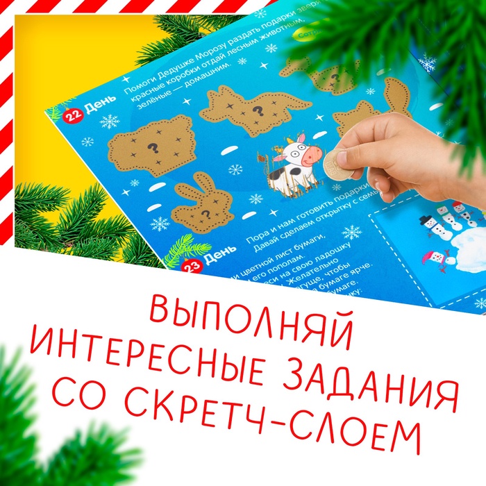 Книга формата А4 станет отличным компаньоном для вашего малыша в преддверии праздника. Каждый день – новое задание, которое не даст заскучать и подарит море позитивных эмоций.
