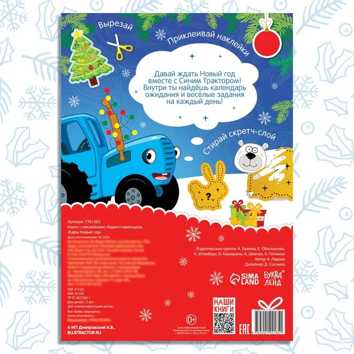 Адвент - календарь «Ждём Новый год», А4, с наклейками, 24 стр., Синий трактор — Характеристики