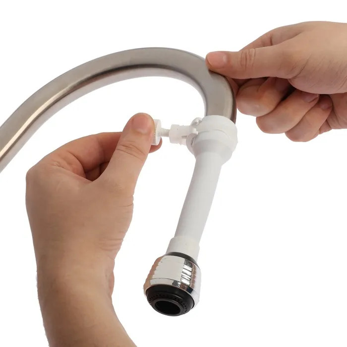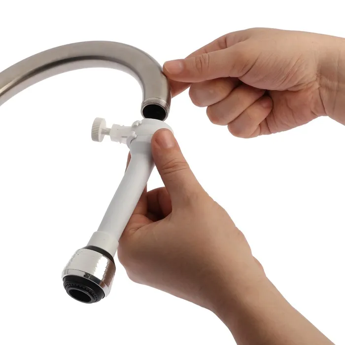 Аэратор ZEIN с белым гибким шлангом на хомуте — универсальное решение для оптимизации водопотока.