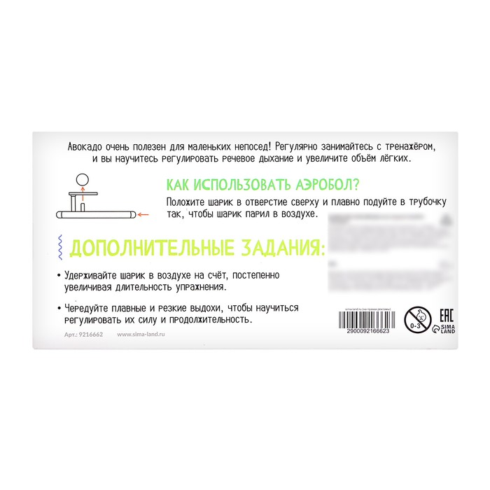 Аэробол, игра - тренажёр для развития речевого дыхания «Авокадик» — Характеристики