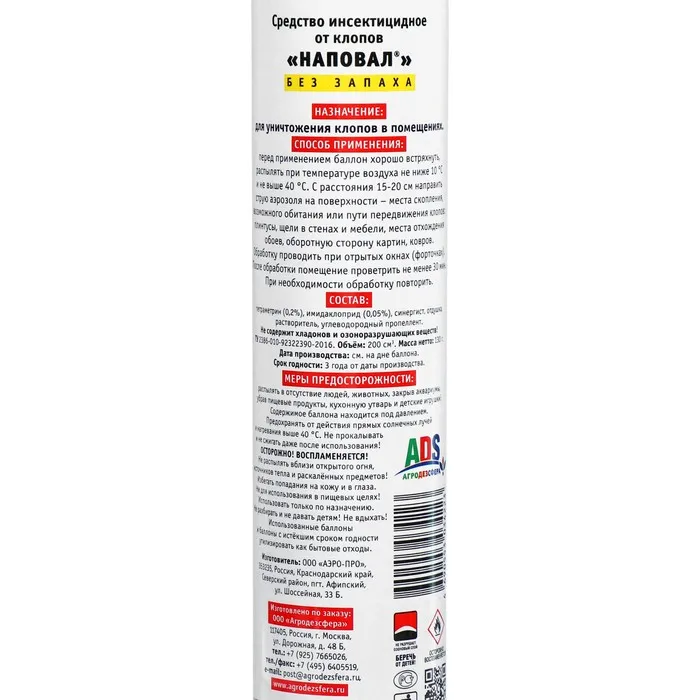 Аэрозоль Инсектицид «Наповал», от клопов, без запаха, 200 мл — Характеристики