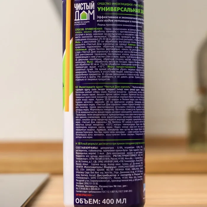 Одним из главных преимуществ этого средства является его универсальность. Аэрозоль Супер от насекомых "Чистый дом" может использоваться в любых помещениях, включая кухни, ванные комнаты и спальни. Благодаря отсутствию запаха, его можно использовать даже в тех случаях, когда другие аэрозоли могут вызывать аллергические реакции.
