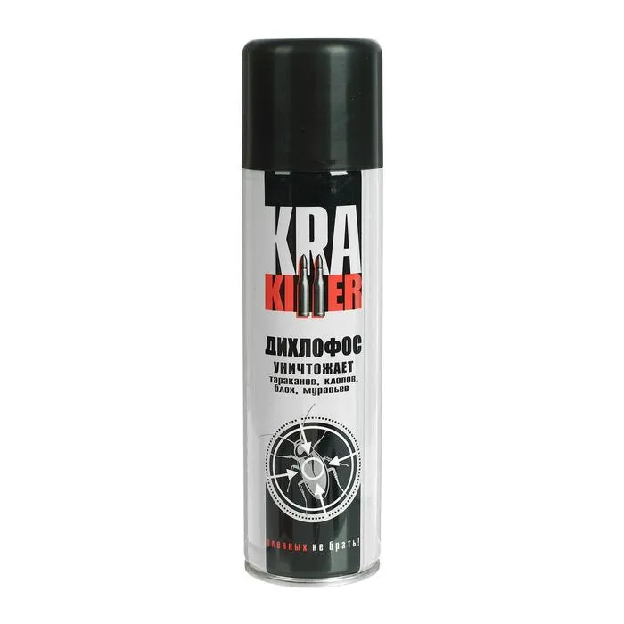 "Аэрозоль от ползающих насекомых ""KRA Killer"" - это инсектицид, содержащий в своем составе дихлофос. Дихлофос является химическим веществом, используемым для уничтожения насекомых, таких как тараканы, муравьи, клопы и другие ползающие насекомые.