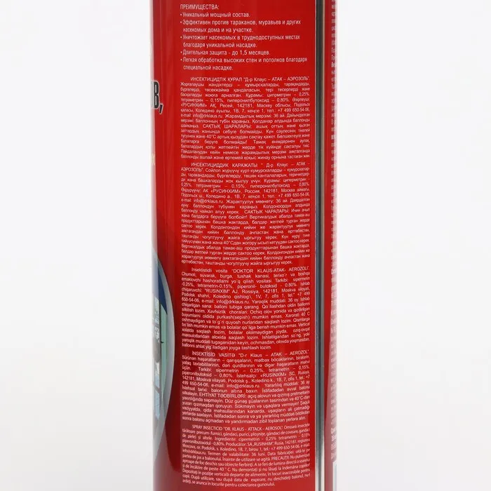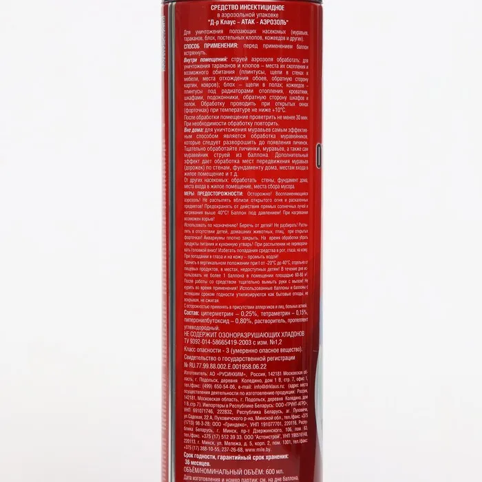 Аэрозоль от насекомых «Доктор Клаус», от муравьев, тараканов и других насекомых, 600 мл — Характеристики