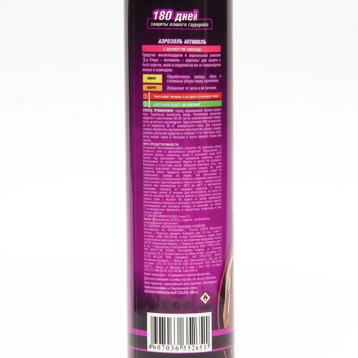 Аэрозоль от насекомых "Dr.Klaus" Антимоль, от моли, с ароматом лаванды, 300 мл — Характеристики