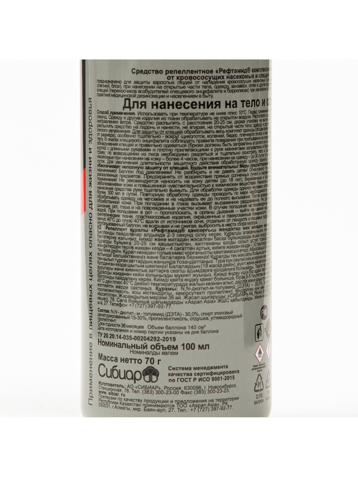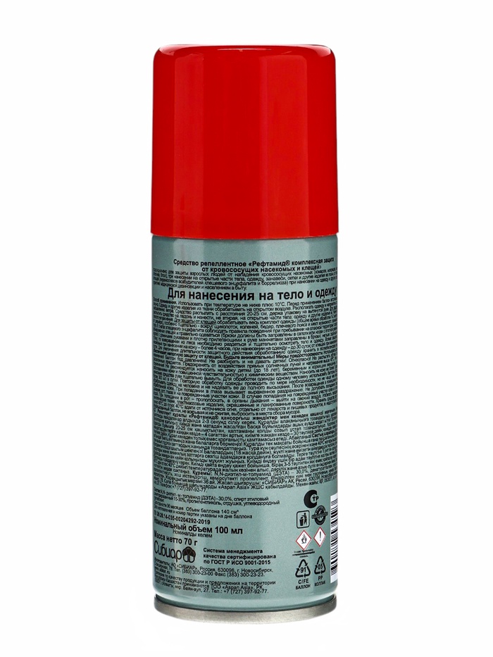 Аэрозоль от насекомых «Рефтамид», репеллентный, от комаров и мошек, 2 в 1, с ароматом цитруса, 100 мл — Характеристики