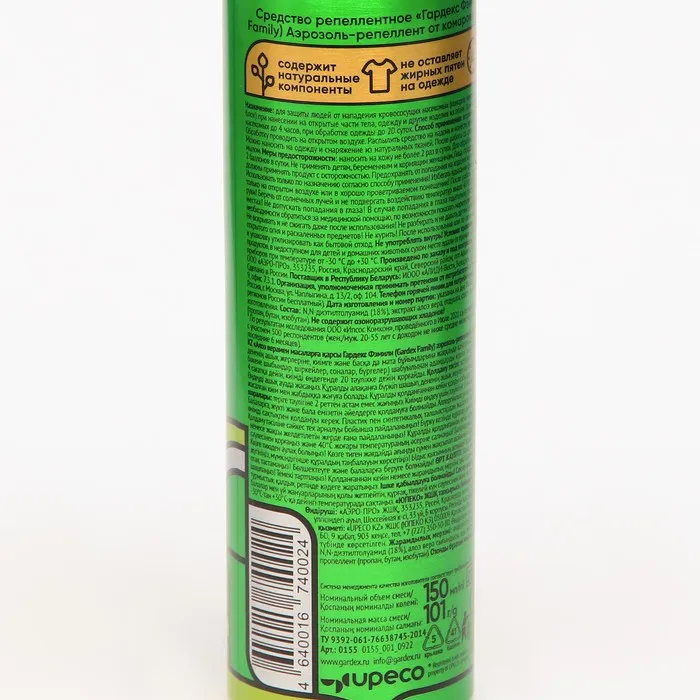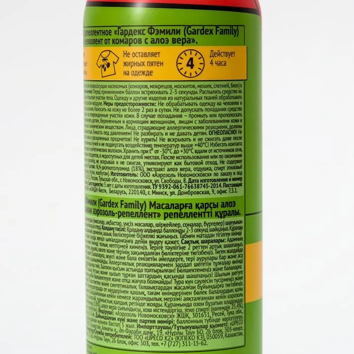 Аэрозоль Репеллент Gardex Family, от комаров, с алоэ вера, 150 мл — Характеристики