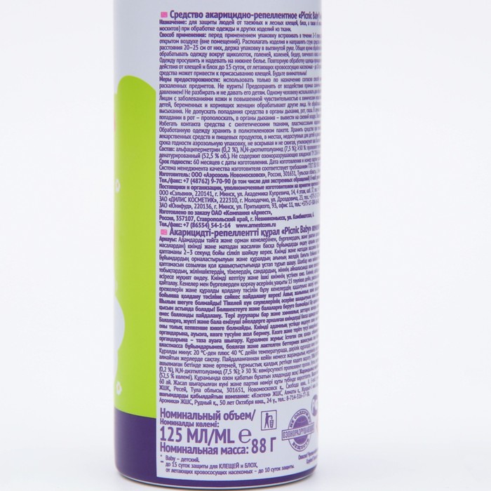 Аэрозоль Репеллент Picnic Baby, от клещей и комаров, флакон, 125 мл — Характеристики