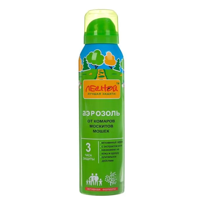 Репеллентный аэрозоль Лесной– надежное средство защиты от комаров, москитов и мошек. Объем баллона составляет 150 мл, что является достаточным для длительного использования.