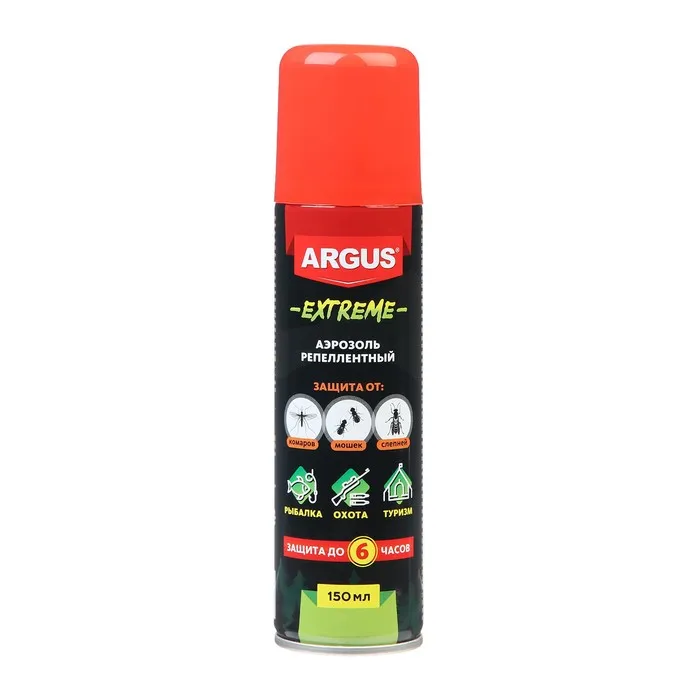 Аэрозоль репеллентный от комаров, мошек, слепней "Argus Extreme", 150 мл — Характеристики